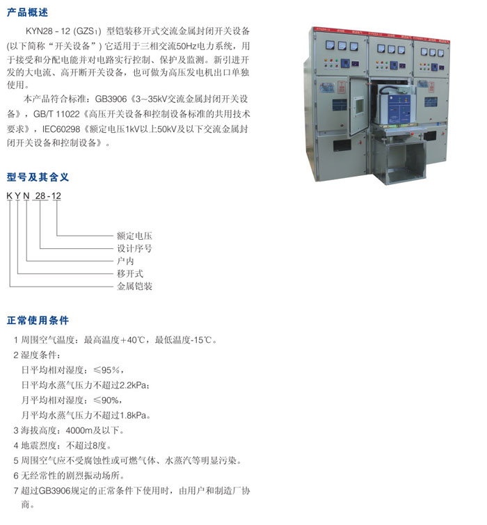 KYN28-12型铠装移开式交流金属封闭开关设备